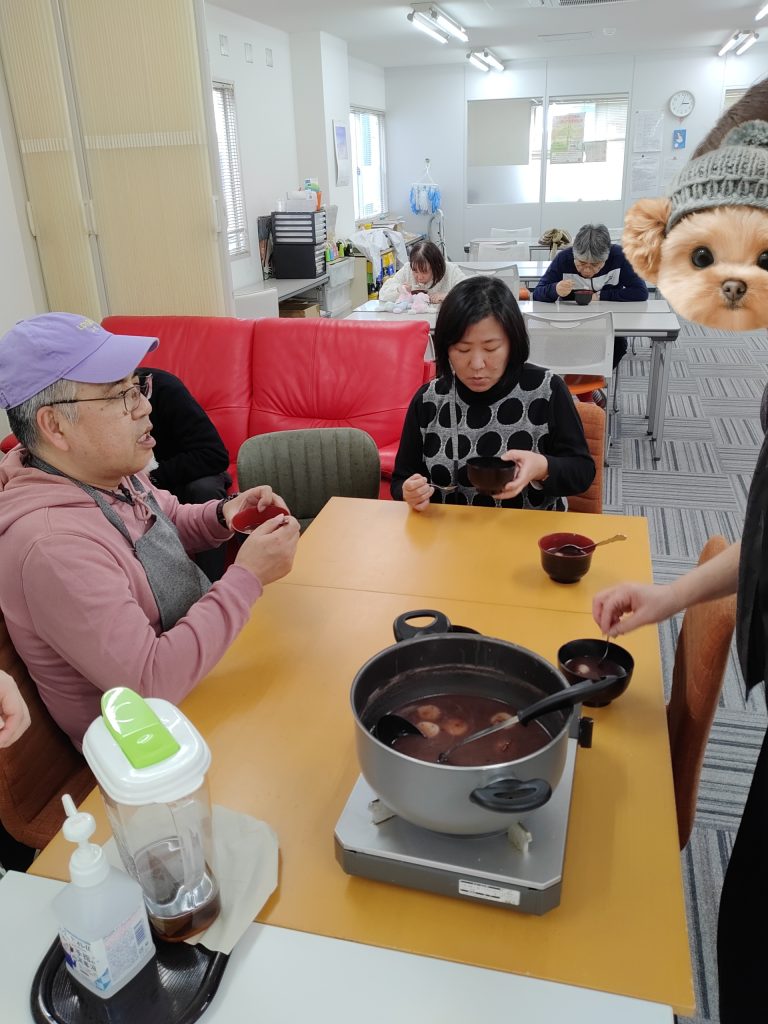 メンバーさんに小豆を絞り出してもらったり混ぜてもらったり楽しく一緒に作りました😌